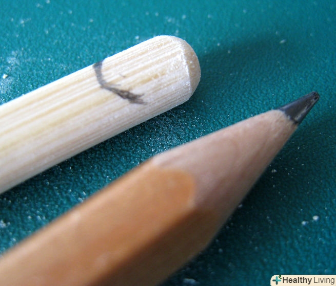 Зробіть велику позначку на кінці , де буде розташований гачок. найпростіше це зробити, сунувши кінчик палички або шпонки в точилку для олівців. Або ж можна просто закруглити ножем кути.
