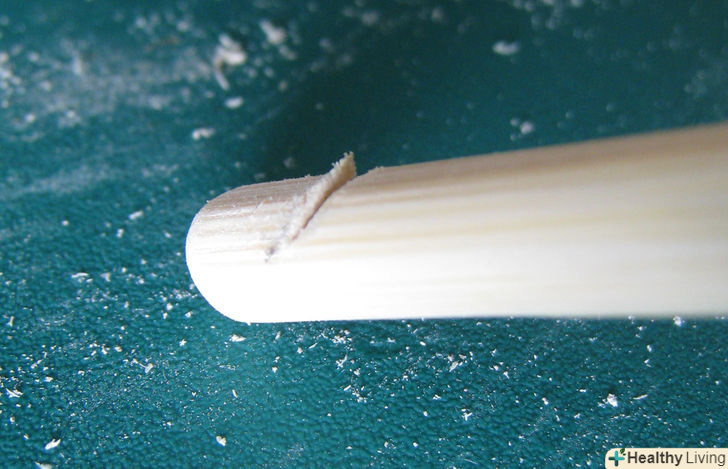 - Виберіть матеріал для гачка. можна взяти дерев'яні або пластмасові палички для їжі або шпонку з твердих порід деревини. Можна навіть спробувати використовувати рівну, добре висушену гілочку. Робота буде менш трудомістка, якщо матеріал спочатку буде володіти розміром і формою, близьким до гачка, особливо це стосується діаметра.