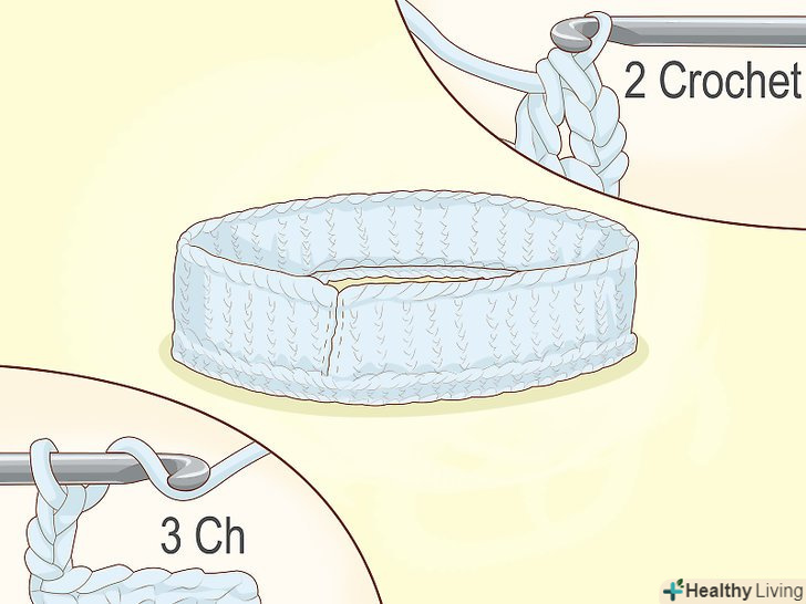 Повторюйте до потрібної довжини. продовжуйте створювати кругові ряди стовпчиків з накидом, поки не досягнете потрібної довжини.- Зв'яжіть арку з трьох повітряних петель на початку кожного кругового ряду і закрийте ряд, зчепите крайні петлі закриває петлею. Зв'яжіть один стовпчик з накидом в кожній петлі ряду безпосередньо перед поточним колом.