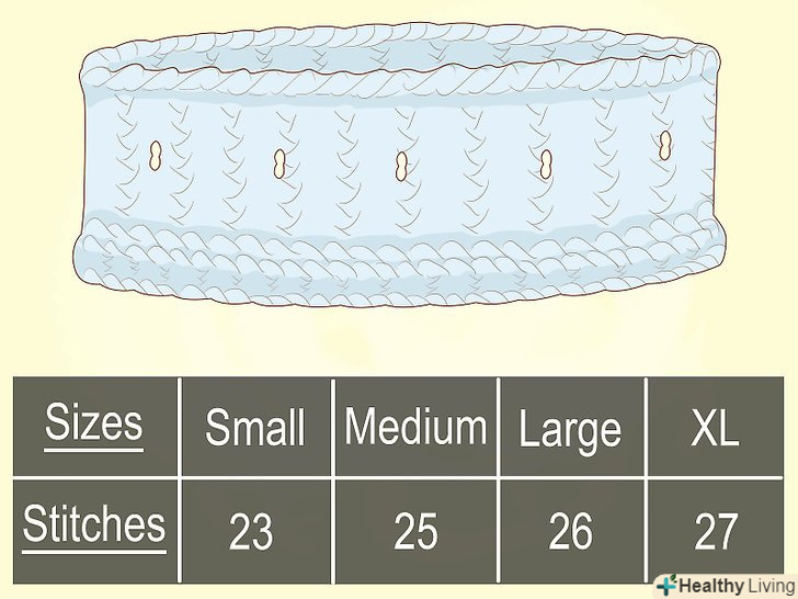 Визначте щільність в'язання. тринадцять петель стовпчика з накидом дорівнює 10 см довжини, а вісім рядів стовпчика з накидом – 10 см ширини.- Для досягнення найкращих результатів використовуйте кручену або легко кручену пряжу.