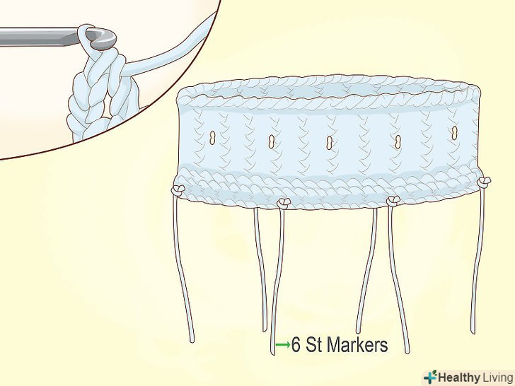 - Не забудьте, що вам доведеться зробити отвори для гудзиків на кожному шостому і восьмому ряду. У наступному кроці надана більш детальна інформація.