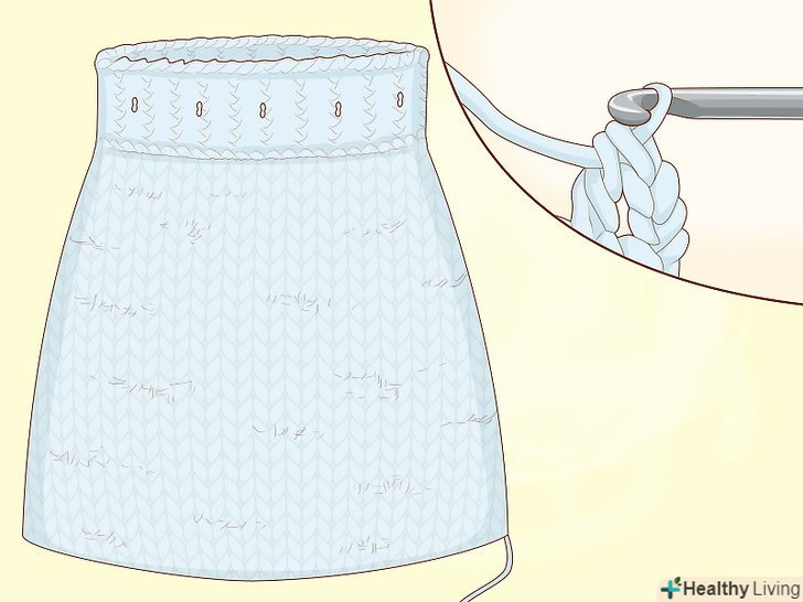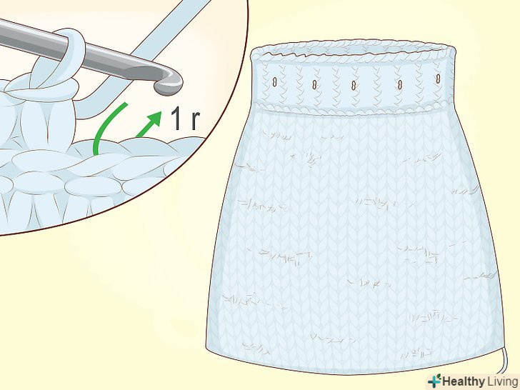 - Не обривайте нитку пряжі в кінці полотнища спідниці, якщо тільки ви не плануєте додавати декоративну облямівку. Якщо ви все ж бажаєте додати облямівку, залиште пряжу цілою.