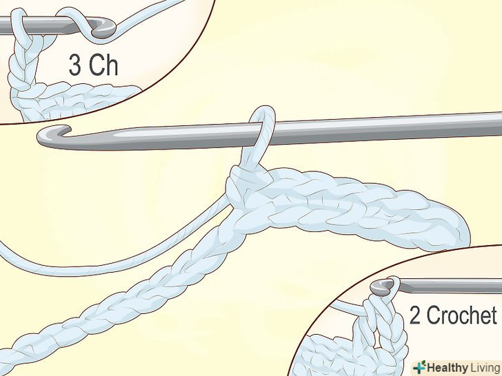 Зв'яжіть стовпчик з накидом через наступний кругової ряд. Зв'яжіть три повітряні петлі, потім один стовпчик з накидом в кожній петлі попереднього кола. Закріплює петлею зчепите останню петлю кола з першої.- Кількість петель не повинно зменшити ні в цьому круговому ряді, ні в наступних.