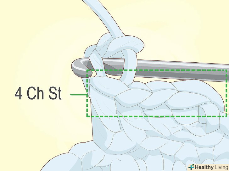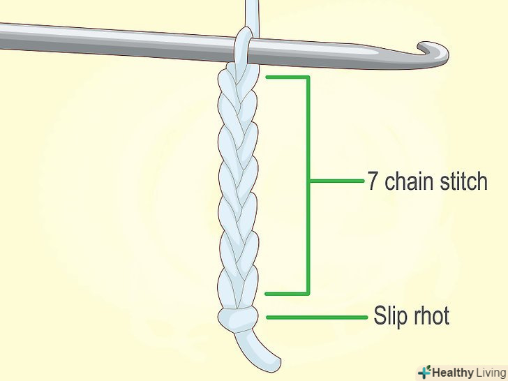 Зв'яжіть основний ланцюжок. зачепіть пряжу до в'язального гачка за допомогою ковзної петлі, а потім зв'яжіть основу з семи повітряних петель.