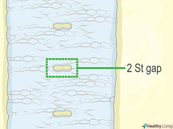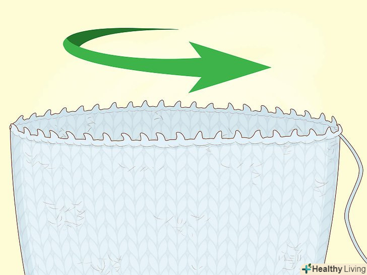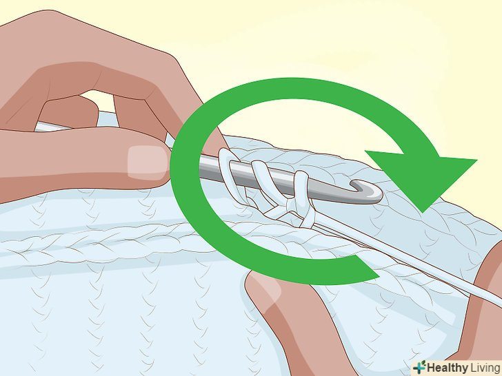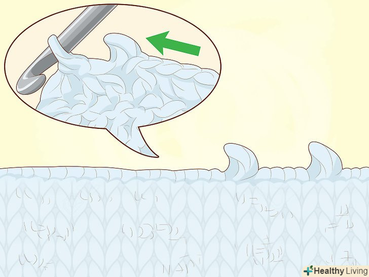 Зчепіть краю разом закріпної петлею (напівстовпчик без накиду). після останнього ряду стовпчиків без накиду, складіть разом перший і останній краю, після чого зчепите разом кожну пару петель закріпної петлею.- Петлі на обох кінцях повинні бути вирівняні, коли будете зчіплювати їх напівстовпчиком без накиду.