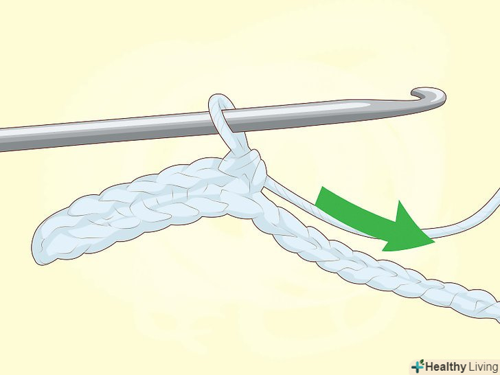 Зв'яжіть стовпчик без накиду в кожній петлі. у другому ряду зв'яжіть по одному стовпчику без накиду в кожній петлі попереднього ряду.- В кінці ряду зв'яжіть повітряну петлю і поверніть виріб.