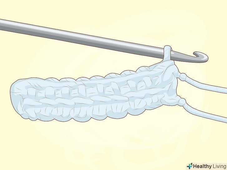 Повторюйте до потрібної довжини. продовжуйте створювати ряди стовпчика без накиду, поки не досягнете довжини, яка б відповідала вашому об'єму талії.- Використовуйте мірну стрічку, щоб перевірити довжину пояса, але в якості керівного принципу вам слід зв'язати 140 рядів для тонкої, 148 рядів для середньої, 156 рядів для широкої і 164 ряди для дуже широкої талії.