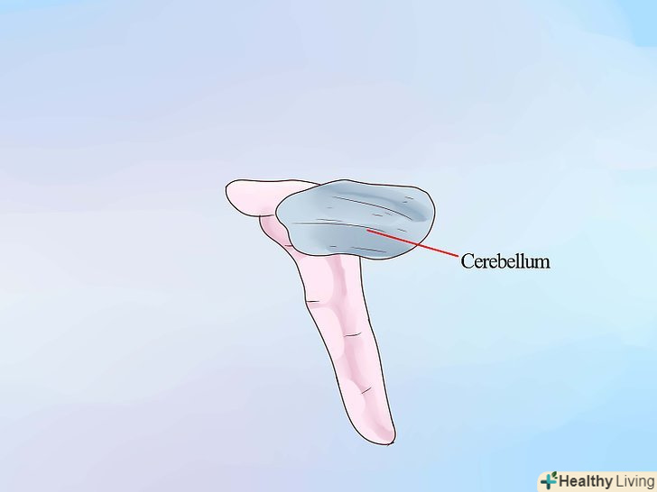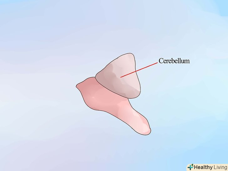 Прикріпіть мозочок. Візьміть коричневу глину і відщипніть шматок, приблизно наполовину менший, ніж той, який ви використовували для створення стовбура мозку. Сформуйте з нього трикутник із закругленими краями. Розмістіть його на верхньому вигині стовбура мозку.- Мозочок відповідає за рух м'язів тіла.