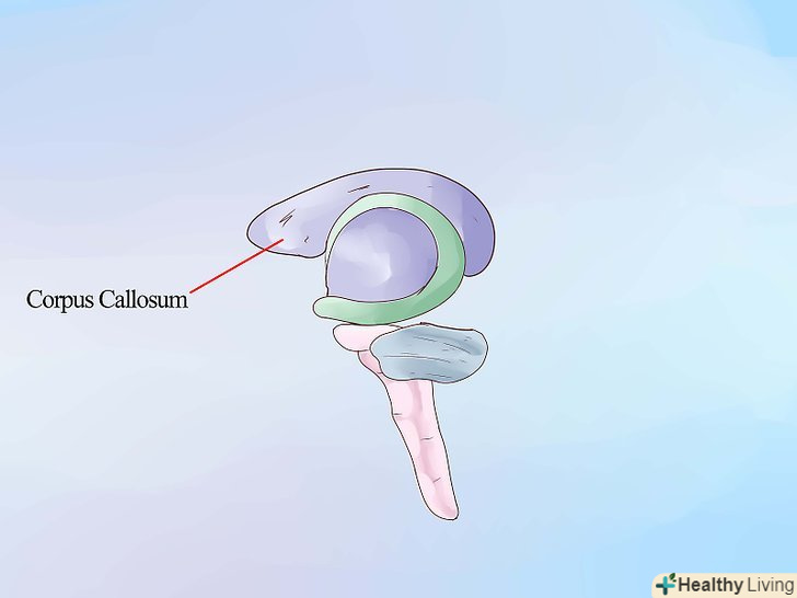 - Зауважте, що мозолисте тіло з'єднує дві половинки мозку, роблячи можливим зв'язок між лівою і правою сторонами мозку.