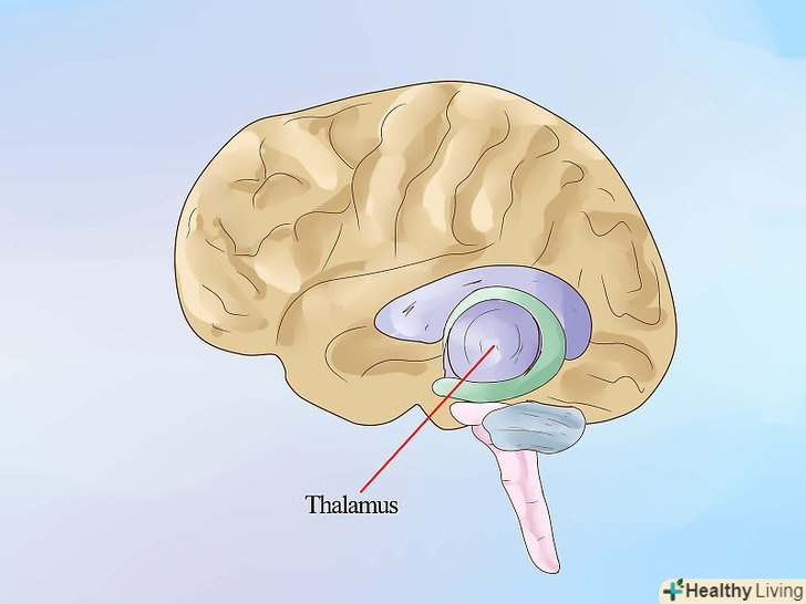 Влепите таламус. Відщипніть шматочок глини розміром, достатнім, щоб поміститися в вигин гіпокампу. Помістіть його прямо туди.- Таламус є ретрансляційною станцією мозку. Велика частина інформації, одержуваної зовнішніми органами почуттів, проходить через даний відділ мозку.