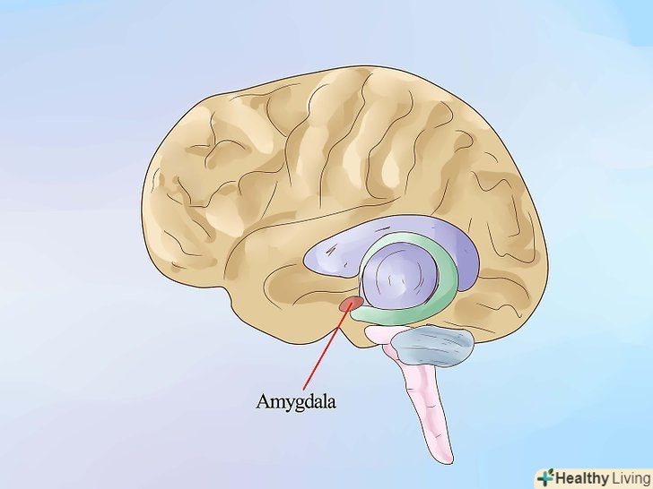 Для завершення моделі приєднайте мигдалеподібне тіло. Відщипніть невеликий шматочок розміром з одну третину таламуса. Сформуйте з нього овал, а потім приліпите його до передньої частини мозку між нижнім краєм головного мозку і верхнім краєм варолієвого моста стовбура мозку.- Ця частина мозку відповідає за почуття страху і гніву.