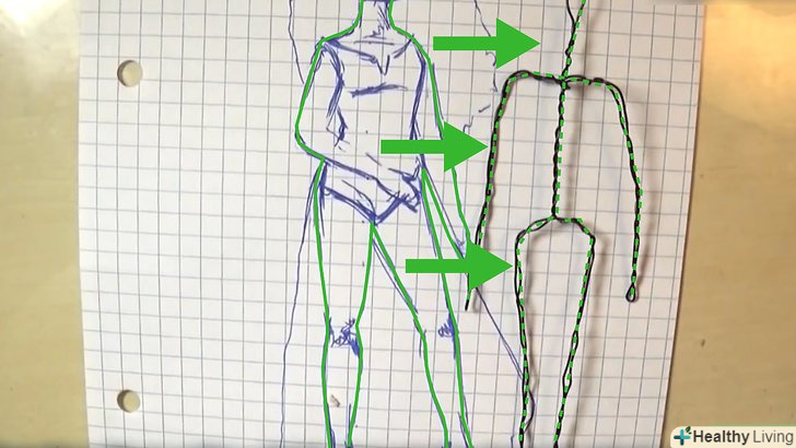 Зробіть каркас. зріжте весь ворс з йоржика для чищення трубок. Укоротите частини дроту, зробивши їх на сантиметр довше кожної ділянки тіла ляльки. Вам знадобляться частини дроту для рук, ніг, долонь, голови, грудей і стегон. Останні три частини повинні бути у формі кола, маючи прямі частини за допомогою яких необхідно буде зробити з'єднання.- Для голови, якщо ви хочете зробити шию правильного розміру, знадобиться додатковий довгий шматок прямого дроту. Вона повинна бути не менше 2 сантиметрів в довжину.