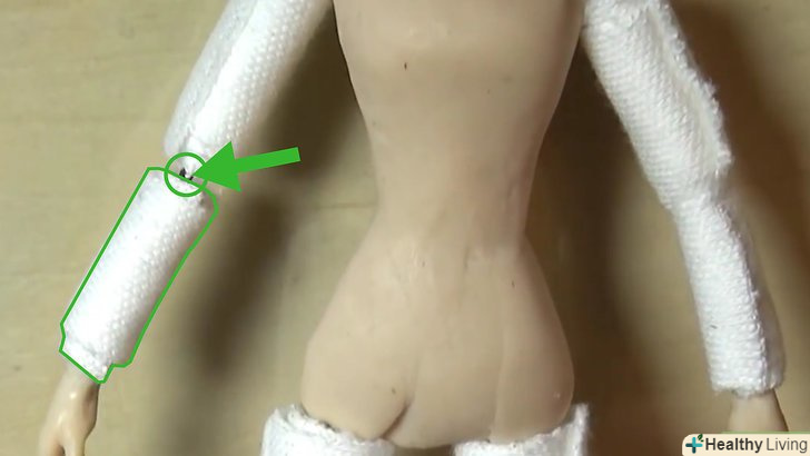 З'єднайте всі частини разом. почніть, обернувши оголені кінці дроту, щоб з'єднати частини тіла разом. Створення суглобів, таким чином, дозволить зберегти їх гнучкість. Оберніть шви гумкою, якщо вони видно, і ви не хочете пошкодити ляльку.