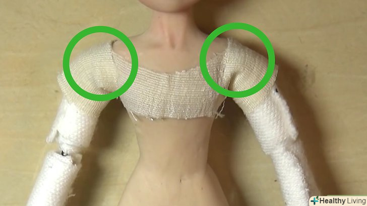Зробіть накладки на каркас. Так як ви не хочете зробити ляльку занадто важкою і витратити багато глини, зробіть накладки з дешевого матеріалу. Пап'є-маше, алюмінієва фольга і клейка стрічка - найбільш поширені матеріали для цього. Закріпіть матеріал, обернувши його навколо дротяного каркаса, створивши» м'язи " фігури. Не забудьте залишити кінці дроту непокритими, так як вони будуть використовуватися, щоб зробити суглоби. Після закінчення, заготівля повинна виглядати трохи схоже на сніговика за рівнем деталізації.