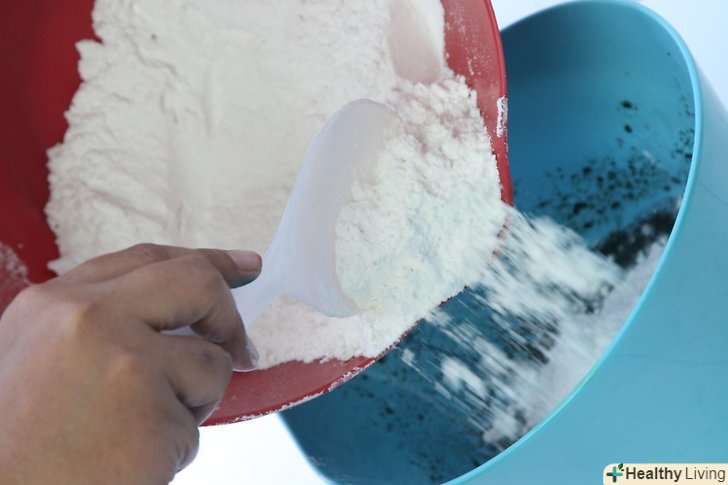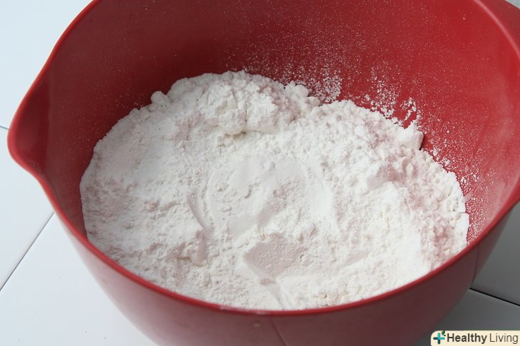 В окрему велику ємність покладіть 4 чашки борошна. згодиться звичайна мука.