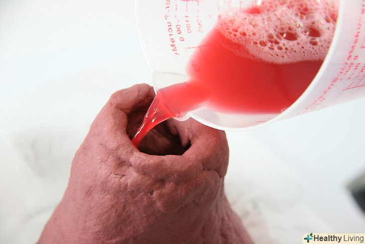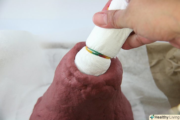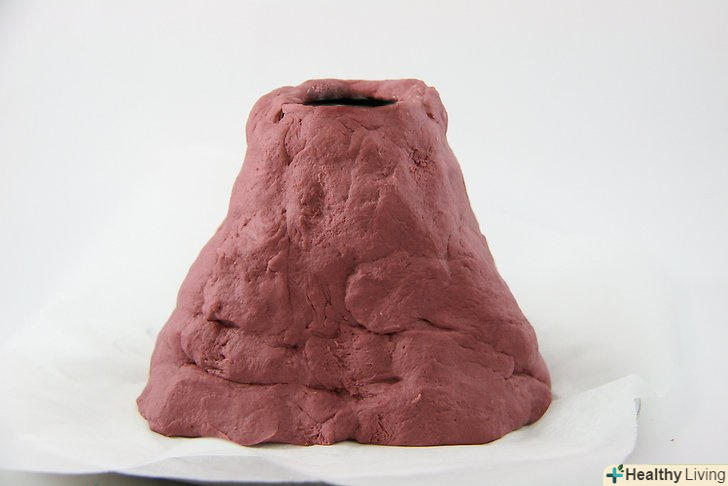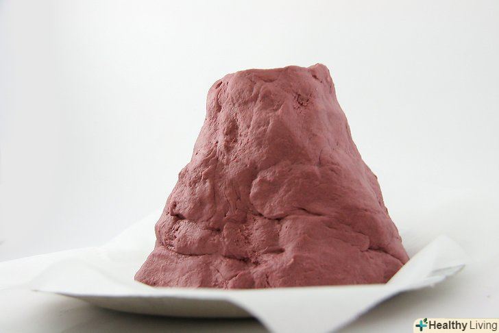 Дайте отриманій масі висохнути. з технічної точки зору, у вас не глина, у вас пластилін. Тому, коли ви будете робити вулкан, треба буде почекати ще добу, щоб все засохло як треба. Так що спершу виліпити вулкан, а потім - на просушку.