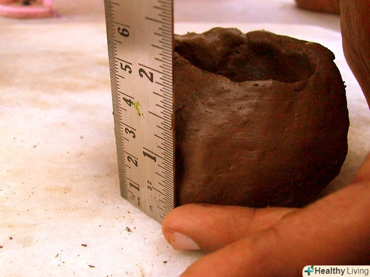 Використовуючи великий і вказівний палець створіть тонкі краї горщика, стискаючи глину між пальцями.