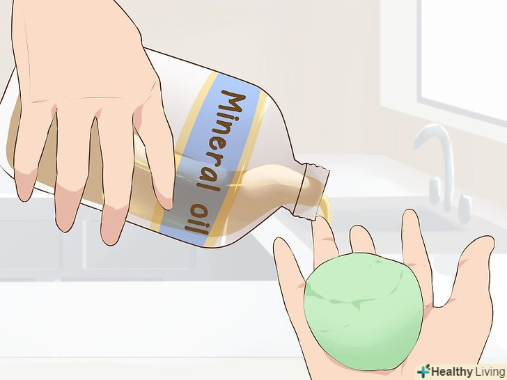 Натріть глину вазеліном. вазелін-широко поширене господарський засіб, яким можна скористатися за відсутності спеціальних размягчителей для глини. Просто зачерпніть трохи вазеліну пальцями і натріть їм глину. Потім розімніть глину, щоб змішати її з вазеліном. Продовжуйте поступово додавати вазелін, поки глина не знайде оптимальну консистенцію. [9]