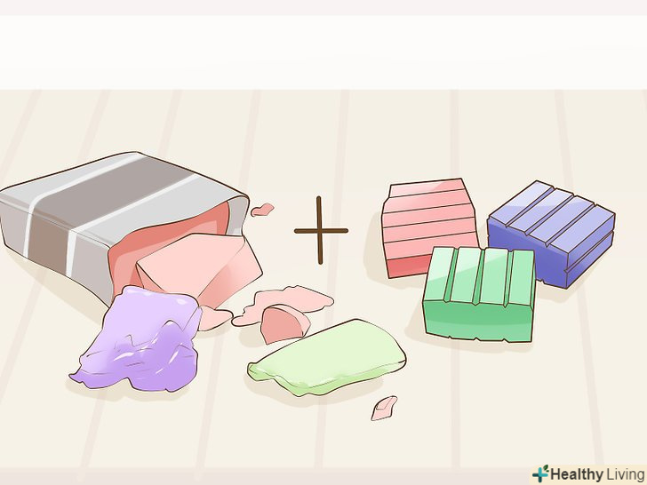 Змішайте затверділу глину зі свіжою глиною. ще один варіант-додати свіжу глину до старої і розім'яти. Чим більше свіжої глини ви додасте, тим м'якше буде підсумковий результат. Змішуйте глину однакового кольору, якщо хочете уникнути непередбачуваного перемішування різних тонів. [10]- Розминайте глину руками до тих пір, поки вона не стане повністю однорідною.