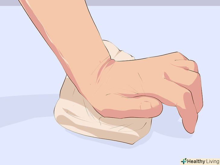 Розімніть глину руками. після розкочування глини її слід розім'яти руками на стільниці, як ви робите це з тестом. Прикладайте до роботи стільки зусиль, скільки від вас потрібно, щоб розтягнути і переформувати глиняний грудку. [5]- Дана робота дозволяє зробити всю масу глини однорідно м'якою.