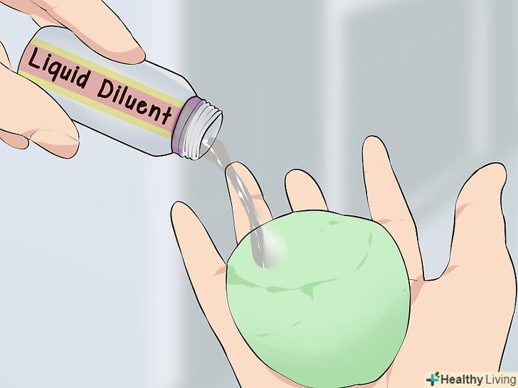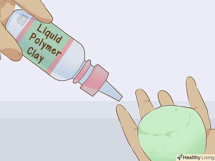 Додайте рідку глину. Рідка полімерна глина – ще один матеріал, яким можна пом'якшити затверділу полімерну глину. Скористайтеся рідкою полімерною глиною як розчинником, додаючи її по краплі в затверділу глину і розминаючи масу до тих пір, поки вона не досягне потрібної консистенції. [7]- Спробуйте взяти безбарвну рідку глину, щоб вона не впливала на колір затверділої полімерної глини.