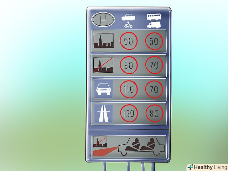 Не перевищуйте швидкість. обмеження на автомагістралях 60 миль/год (96 км/год) - для вантажних автомобілів більше 3,5 тонн, і 70 миль/год (112 км / год) - для міських, міжміських автобусів, і легкових автомобілів. [1]