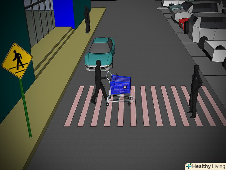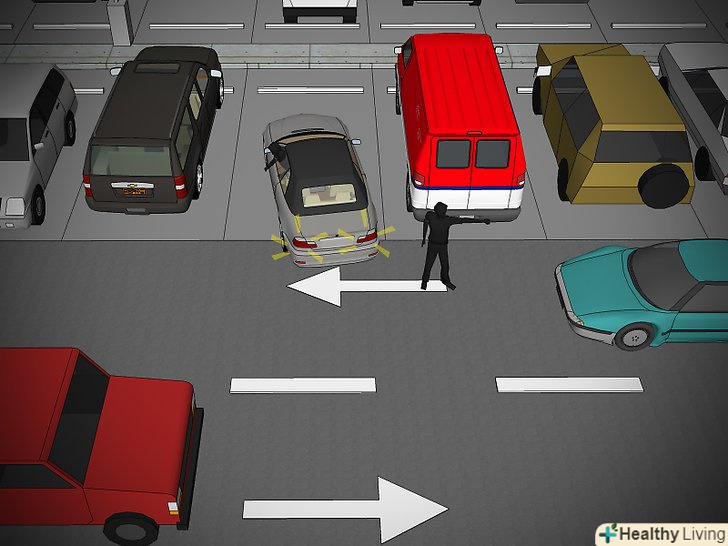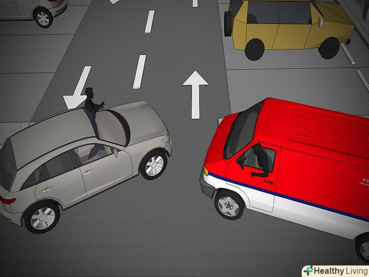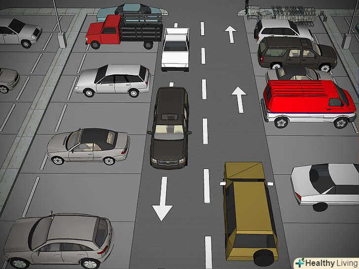 Пам'ятайте, що ви можете опинитися в мертвій зоні біля машин, що виїжджають зі своїх місць заднім ходом.водіям невеликих автомобілів, припаркованих між позашляховиками і мінівенами, часто не видно, що відбувається на дорозі, коли вони виїжджають з місця, тому пригальмуйте і випустіть їх. Якщо ви проходите повз, коли машина намагається виїхати заднім ходом, затримайтеся і жестами допоможіть водієві виїхати.- Дотримуйтесь правил дорожнього руху при переміщенні по парковці.вас не зупинить співробітник ДПС, але правила залишаються правилами і на парковці. Пам'ятайте про наступні нюанси: