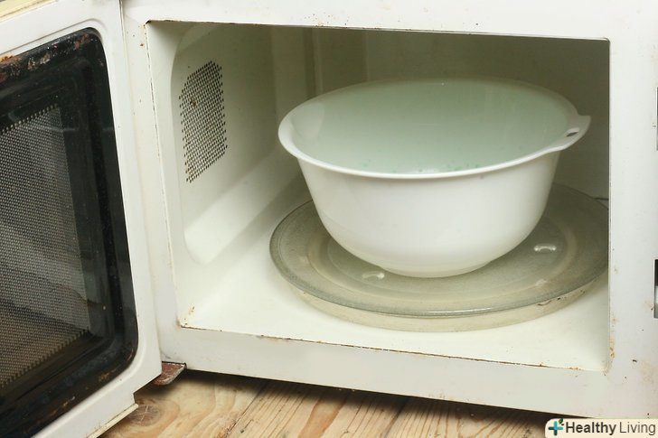 - Поставте миску з цією сумішшю в мікрохвильовку. нагрівайте її при високій температурі протягом 4-5 хвилин. Періодично дивіться на суміш, щоб вона не втекла через край. [3]