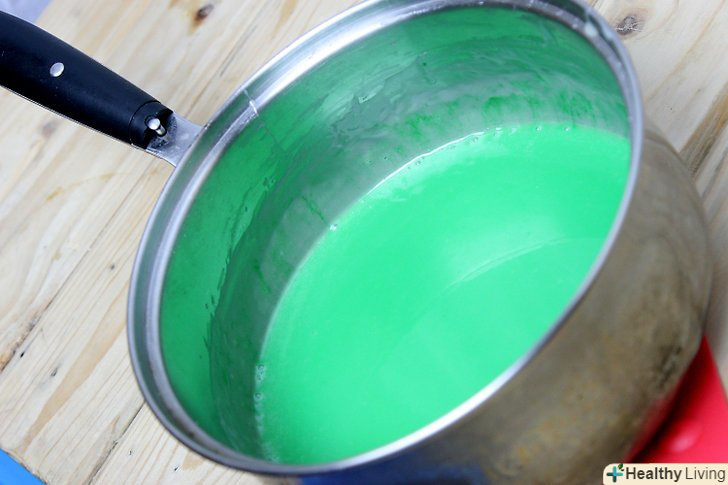 - Зніміть каструльку з печі, коли суміш загусне. додайте харчовий барвник. Додайте його стільки, скільки вам потрібно для отримання бажаного кольору. [8]