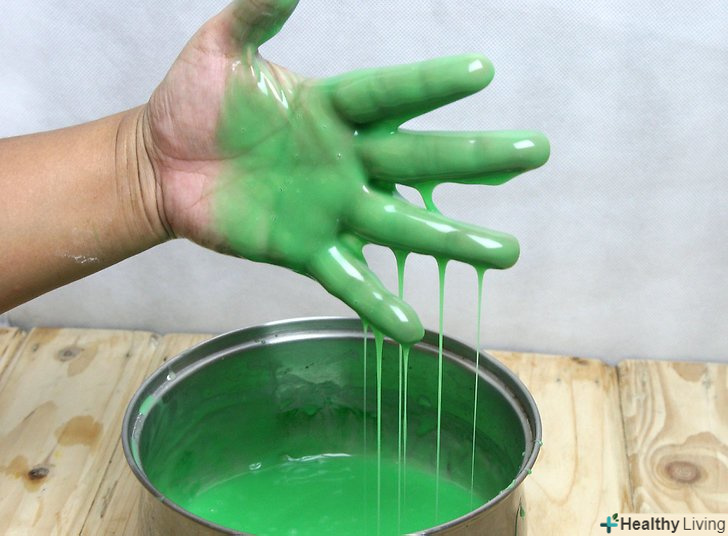 - Додайте стільки крапель харчового барвника, скільки потрібно для досягнення бажаного кольору води і суміші. саме такого кольору буде ваш лизун. Він потім не зміниться. Ретельно розмішайте. [2]