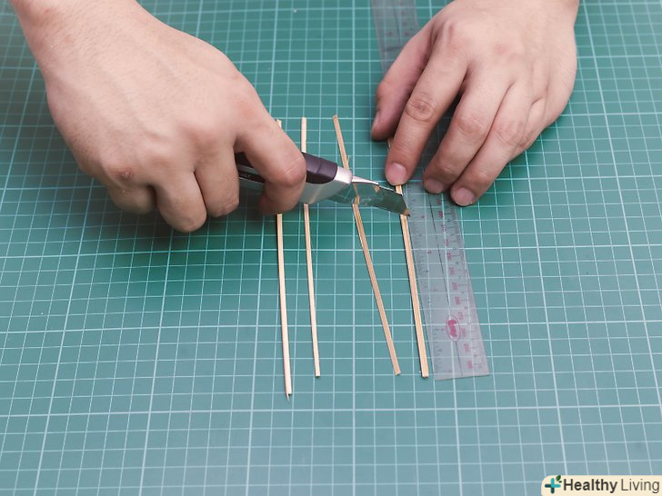 Подумайте про те, щоб використовувати для каркаса замість соломинок палички коркового дерева. палички коркового дерева можна придбати в магазині товарів для рукоділля. Якщо поглянути на таку паличку з торця, то її перетин буде квадратним або прямокутним. Обріжте палички до необхідної довжини. Капніть на центр однієї з паличок краплю клею для дерева. Прикладіть зверху другу паличку, утворивши хрестовину. Зачекайте, поки клей не висохне.- Постарайтеся придбати найтонші палички. Вони будуть найлегше, що полегшить запуск кулі.