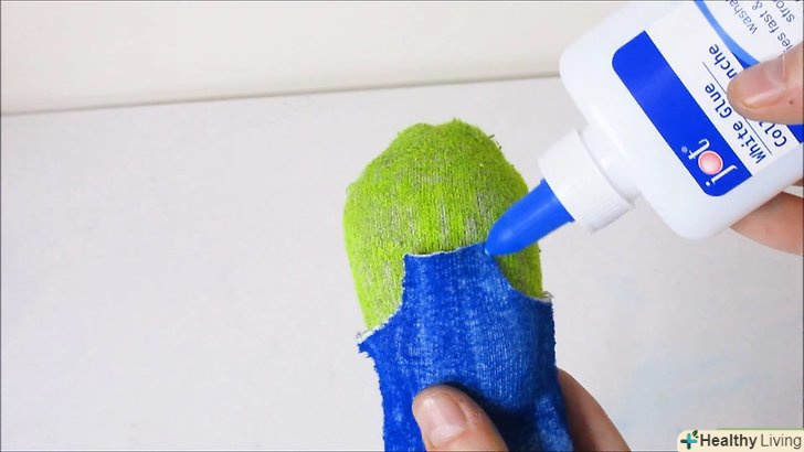 - Наповніть носок наповнювачем для іграшок і зашийте. на відстані 1 см від відкритого зрізу носка прокладіть сметочную рядок. Потім обережно стягніть кінці нитки, щоб відкриті зрізи при цьому підвернулися всередину. Якщо набивка починає вилазити назовні, підпихніть її назад пальцем. Зв'яжіть кінці нитки вузлом і обріжте зайве. [4]