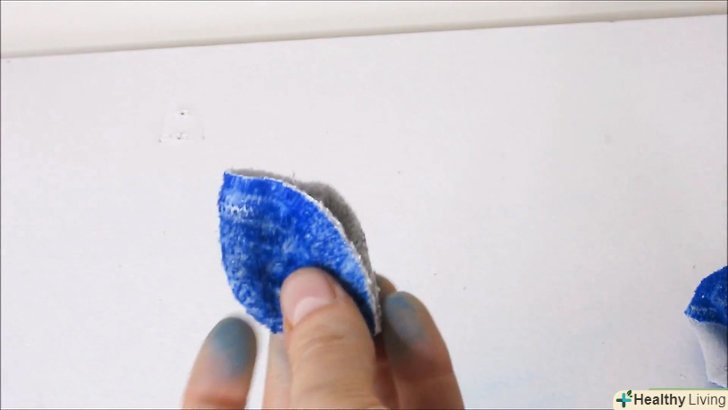 Накресліть і виріжте деталі ніг. з верхньої частини синього носка вам необхідно вирізати L-образні контури двох ніг. При цьому задня (довга) частина кожної ноги повинна припадати на згин носка. Вам буде потрібно дві деталі.- Зшийте ноги і набийте їх. Складіть кожну деталь лицьовою стороною всередину. У вас повинно вийти дві складені L-образні деталі, виворітна сторона яких дивиться назовні. Зшийте зрізи деталей. Використовуйте при цьому мінімальні припуски. Залиште відкритою верхню частину кожної ноги. Виверніть деталі і набийте.