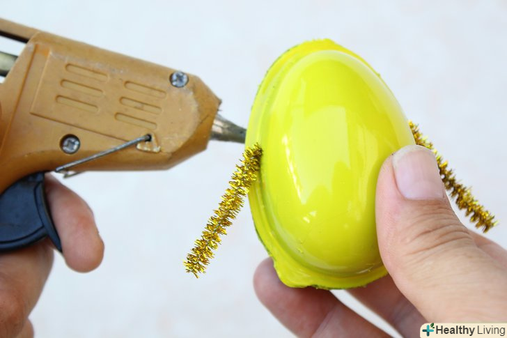 Закріпіть руки гарячим клеєм. якщо ви ще не склеїли контейнер, то зсередини шматочки йоржика можна загнути приблизно на 1 см.Щедро змастіть гарячим клеєм місця згинів.