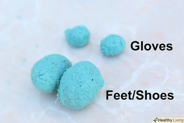Зробіть рукавички і черевики міньйона з повітряотверждаемой маси для ліплення. ви можете використовувати масу будь-якого кольору, а потім пофарбувати її в чорний колір, або відразу ж використовувати масу для ліплення чорного кольору.- Коли зліпите рукавички, прикріпіть їх до рук ще до затвердіння маси.