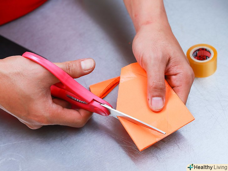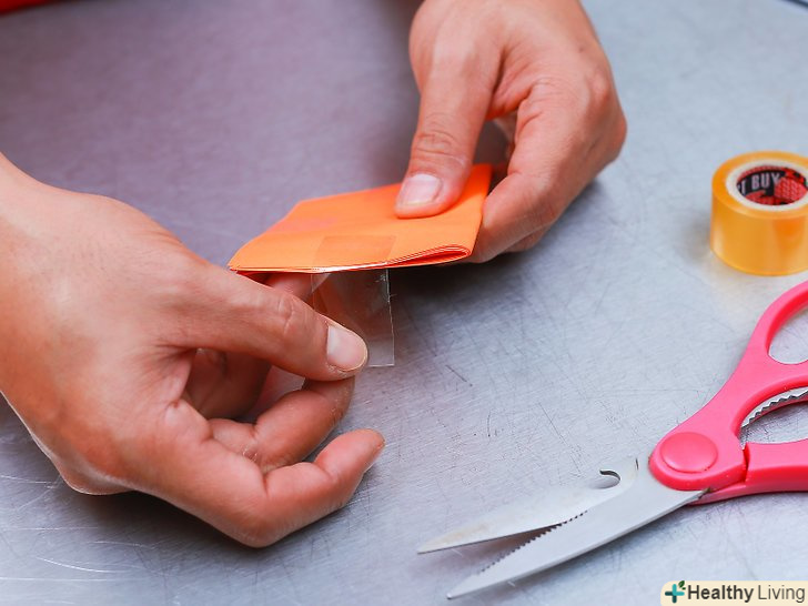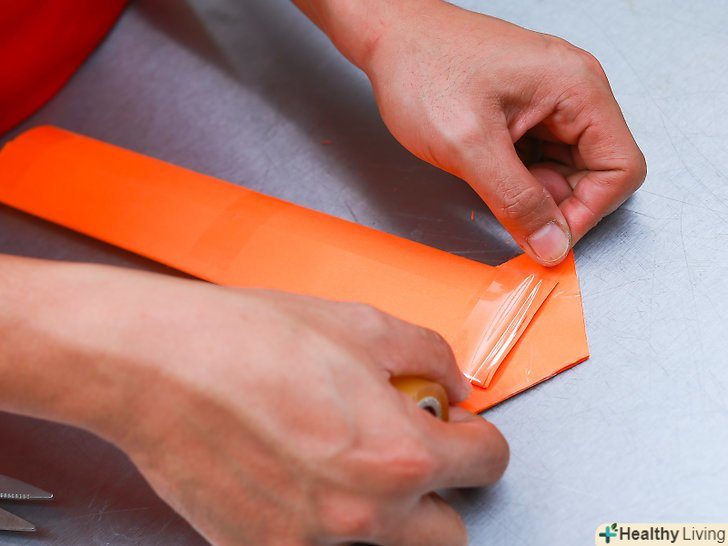 Додайте ще трохи витків клейкої стрічки. швидше за все, коли ви вирізали лезо, ви зрізали і частина липкої стрічки, так що вам необхідно заклеїти краю ще одним шаром скотча. Перед проклеюванням країв переконайтеся, що папір складена рівно по лініях.