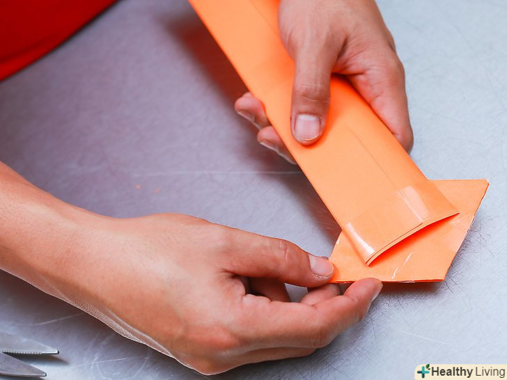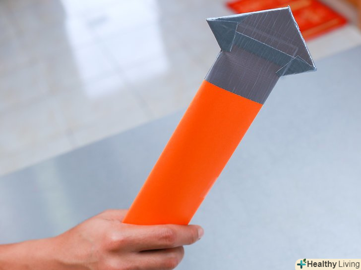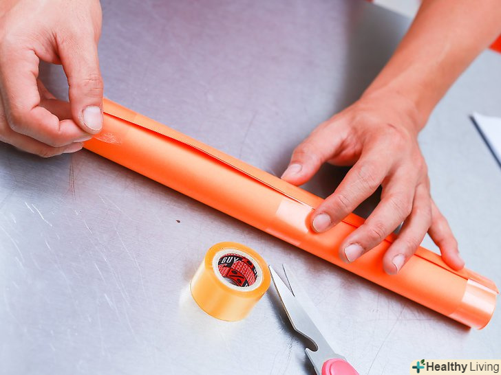 Заклейте отриману трубку. візьміть три невеликі шматки клейкої стрічки і ретельно заклейте трубку. Один шматок можна наклеїти посередині, а два інших повинні з'єднати краю. Вам не потрібна дорога клейка стрічка. Підійде звичайний скотч.