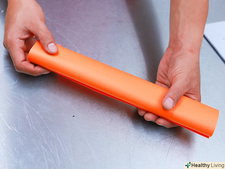 Скрутіть аркуші паперу в трубку. акуратно складіть листи разом і скрутіть їх в трубку. Вам необхідно скрутити їх по ширині (21,6 см), так що трубка повинна вийти довжиною 28 сантиметрів. [1]- Діаметр повинен бути досить маленьким, так що скручуйте щільно. Діаметр повинен бути не більше 1 – 2 см.