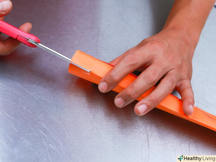 Зробіть 2,5 см надрізи на рукоятці з одного боку. візьміться за один кінець і за допомогою ножиць розріжте рукоятку по зробленим згинах. Два надрізи повинні бути точно навпроти один одного і паралельні плоскій стороні рукоятки. [2]