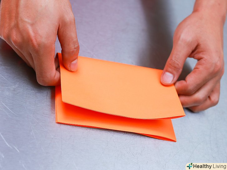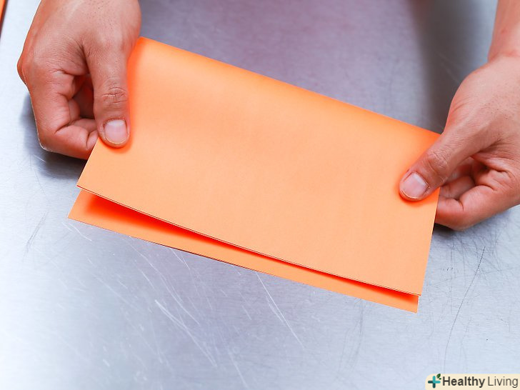Згорніть листи ще раз навпіл, тепер вже з іншого боку. переконайтеся, що листи складені рівно і складіть їх ще раз навпіл. Цього разу складайте протилежну сторону-ту, яка була 21,6 см. [4]- Складіть листи двічі: у вас повинен вийти прямокутник з розмірами приблизно 10,8 х 14 см.