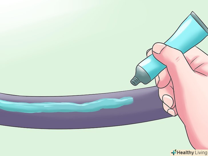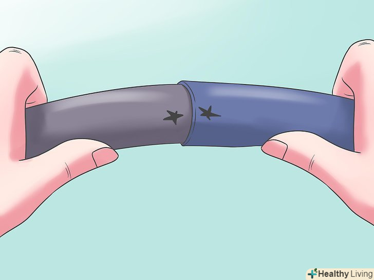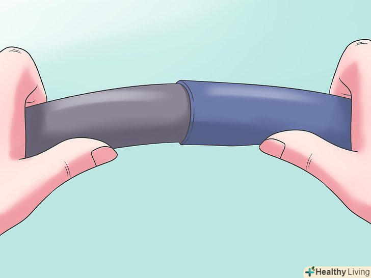 Розм'якшіть один кінець труби. Закип'ятіть воду у великій каструлі і занурте один кінець труби в окріп на 30 секунд. Цей кінець повинен стати м'яким і пластичним, щоб його потім можна було скріпити з протилежним кінцем.- Якщо вам незручно працювати з окропом, можна скористатися феном. Проте це займе більше часу і зажадає постійної роботи фена. Зазвичай Каструля з окропом є найпростішим варіантом в разі доступності окропу.