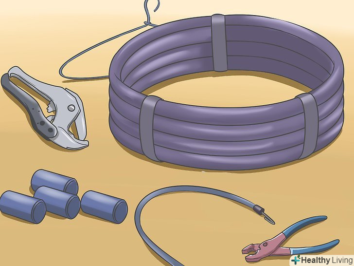 Приготуйте необхідні матеріали. Вам буде потрібно все те ж саме, що і для класичного обруча, плюс ще кілька матеріалів. Повний список необхідних речей виглядає наступним чином:- Зрошувальна труба діаметром 3/4" або 20 мм (залежно від маркування), що витримує тиск 10 атмосфер;