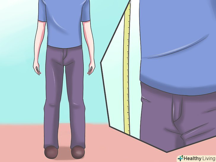 Визначтеся з розмірами. щоб визначити необхідну для обруча довжину тонкої труби ПВХ, призначеної для систем зрошення, станьте прямо і виміряйте відстань від підлоги до торсу (на рівні десь між пупком і грудьми). Ця мірка буде відповідати діаметру стартового обруча для занять, якщо у вас нормальний індекс маси тіла. У разі надмірної ваги або ожиріння розрахувати ідеальний діаметр обруча можна, помноживши обхват вашої талії на 1,2 (наприклад, 100 см х 1,2 = 120 см). Далі потрібно обчислити окружність обруча, щоб з'ясувати довжину труби для його виготовлення. Довжина кола (С) дорівнює числу π (3,14), помноженому на діаметр (d): с=π*d.- В середньому, діаметр обруча для дорослої людини дорівнює 100 см, тому довжина його кола становить 314 см.