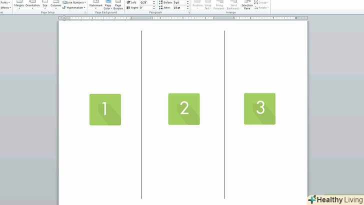 - Створіть новий документ з горизонтальною орієнтацією сторінки і трьома колонками. створіть новий документ в текстовому редакторі . Змініть орієнтацію сторінки на горизонтальну (альбомну) і додайте три колонки. Кожна з цих колонок буде являти собою одну панель буклету. [5]