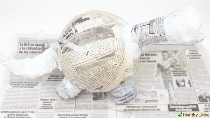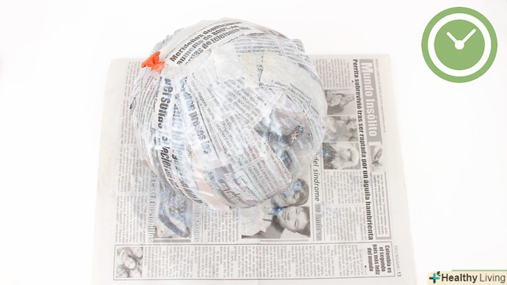 - Надійти повітряну кульку, порвіть на смужки газетний папір і приготуйте пасту для пап'є-маше. надійти кульку до потрібних Вам розмірів. Потім порвіть газетний папір на вузькі смужки шириною 2,5–7,5 сантиметрів. І нарешті, приготуйте відповідний Вам клей або пасту для пап'є-маше . [16]