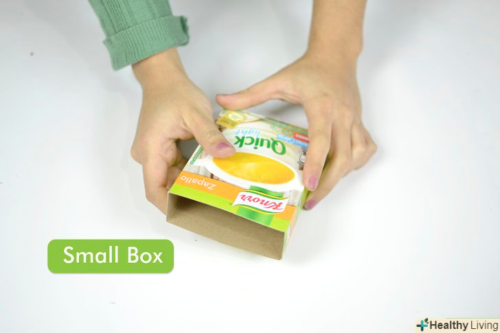 Знайдіть невелику плоску коробку. спробуйте взяти плоску пакувальну коробку від будь-яких харчових продуктів. Зріжте верхні клапани коробки і вирівняйте її сторони зверху. [4]- Якщо коробка занадто висока, обріжте її зверху до потрібної висоти.