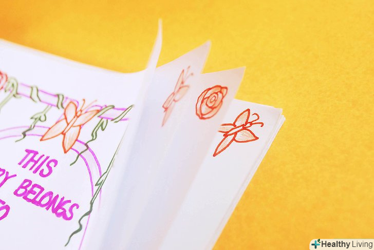 - Застосуйте уяву, прикрашаючи обкладинку. Знайдіть все, що можна використовувати. Може, ті старі кольорові олівці, які вам не подобалися, тепер на щось згодяться? Або старі наклейки в коробці, про які ви вже забули? Можна навіть обернути зошит красивою тканиною з візерунком!