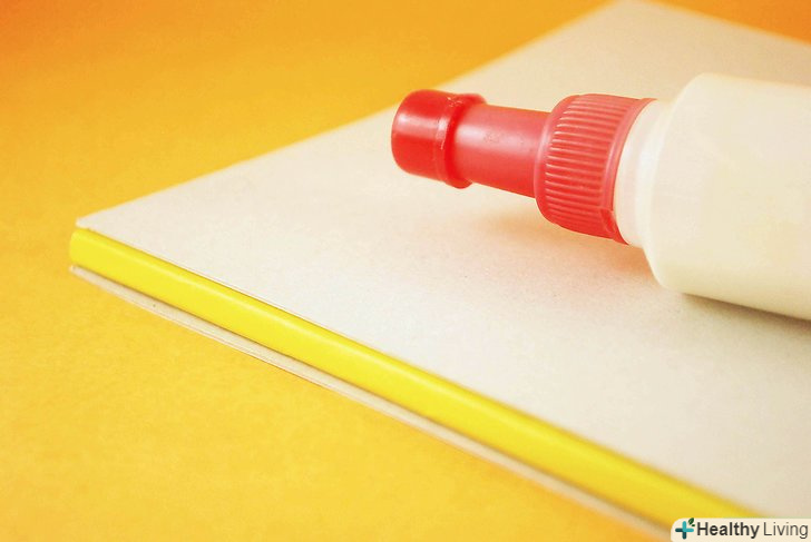 Тепер, коли клей на корінці підсох, виріжте шматочок паперу і приклейте його до приклеєного корінця книги. Пам'ятайте, що вам потрібні поля хоча б по 3 см з кожного боку. Ці 3 см нормального паперу будуть приклеєні на перший і останній звичайні листи з внутрішньої частини книги.