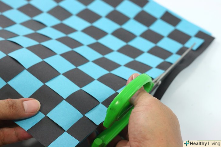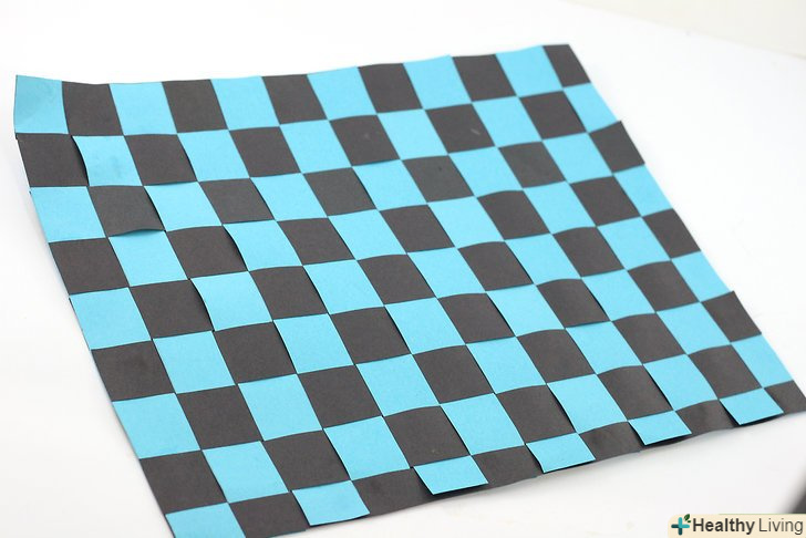 Наступну частину смуг зробіть коротше. Так як у вас вже є 9 смуг шириною по 2,5 см, для отримання прямокутника вам необхідно зробити наступну партію смуг довжиною по 22,5 см.- Покладіть довгі смуги горизонтально і вертикально вплетіть в них короткі смуги.