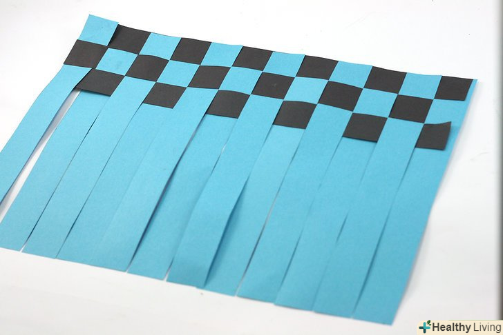- Приклейте клеєм або скотчем до першої вертикальної смузі кінці горизонтальних смуг, з чергуванням накладаючи їх зверху і знизу.
